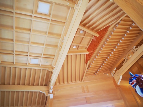 ・岩手県紫波郡紫波町 ・令和4年2022年5月17日 ・新社殿半年点検時 ・河川工事 境内移転事業 ・幣殿天井の様子