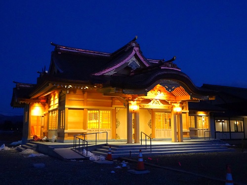 ・岩手県紫波郡 ・令和3年2021年12月22日 ・社殿竣工検査時夜景 ・河川工事 境内移転事業