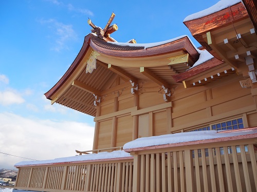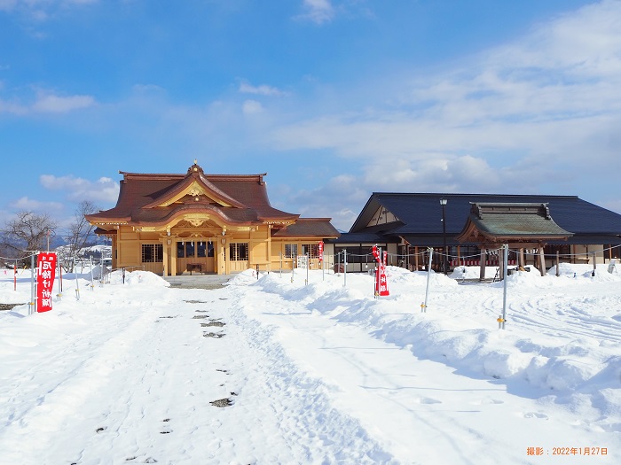 ・秋田県秋田市 ・令和4年2022年1月11日 ・本殿改修工事年末竣工 ・新年1月様子