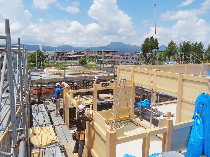 ・岩手県紫波郡 ・令和3年2021年7月3日 ・社殿建て方工事野棟取付