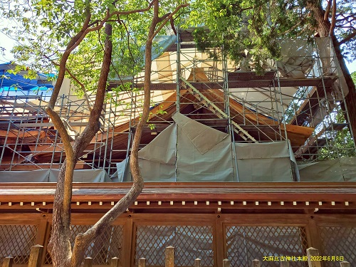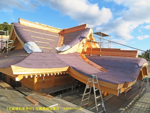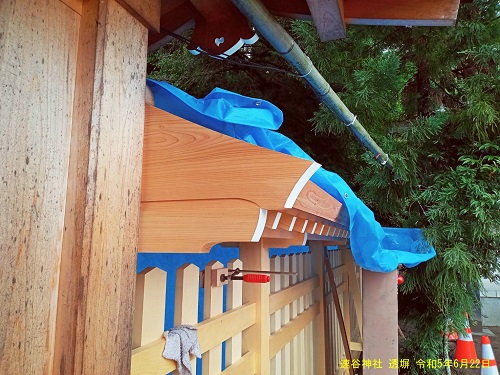 ・徳島県鳴門市 ・令和4年2022年6月8日 ・社殿経年変化 ・雨漏れ等修繕事業 ・本殿屋根修繕の様子