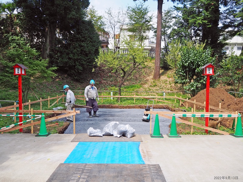 ・東京都町田市本町田 ・令和4年2022年9月15日撮影 ・手水舎移転新築工事 ・基礎工事着工 ・老朽化対応と手水新形式 ・令和5年3月竣工予定