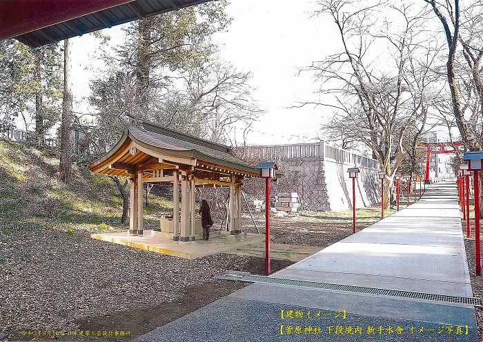 ・東京都町田市本町田 ・令和5年2023年3月竣工予定 ・新手水舎完成予想合成写真 ・老朽化対応と手水新形式