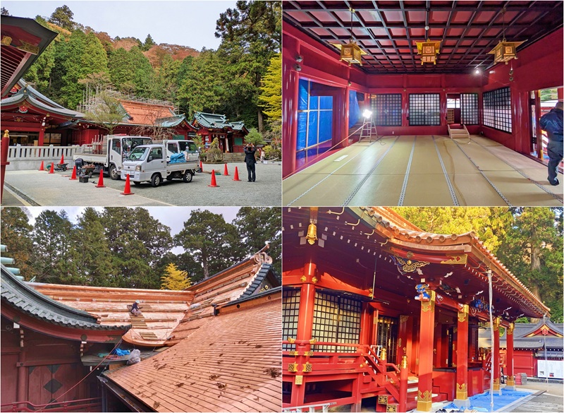 ・神奈川県足柄下郡箱根町 ・令和7年11月撮影 ・社殿改修工事 ・向拝拡幅整備工事 ・屋根改修工事竣工
