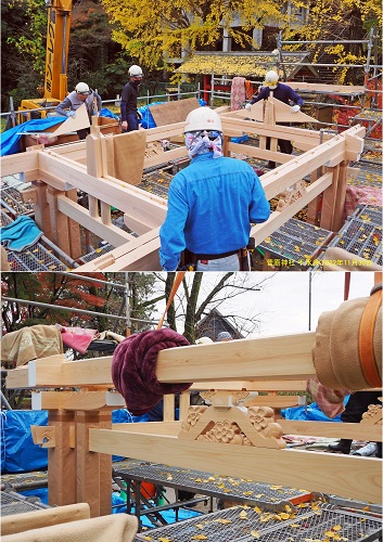 ・東京都中央区日本橋小網町 ・令和5年2023年10月26日撮影 ・社頭鳥居改築工事 ・建て方様子写真