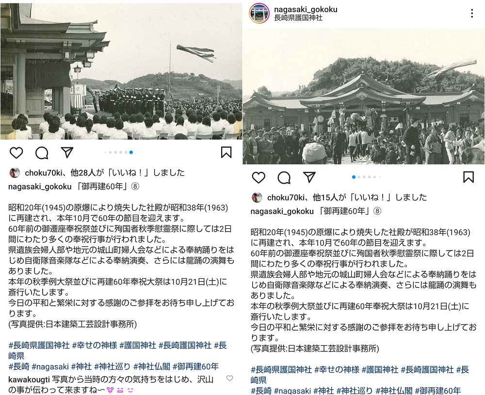 ・長崎県長崎市城栄町 ・令和5年2023年10月4日インスタグラム ・社殿原爆復興再建60年記念大祭