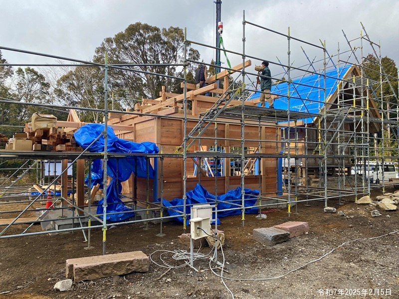 ・鹿児島県霧島市 ・令和7年2025年2月5日撮影 ・境内整備工事 ・社殿改修工事 ・小屋組み工事