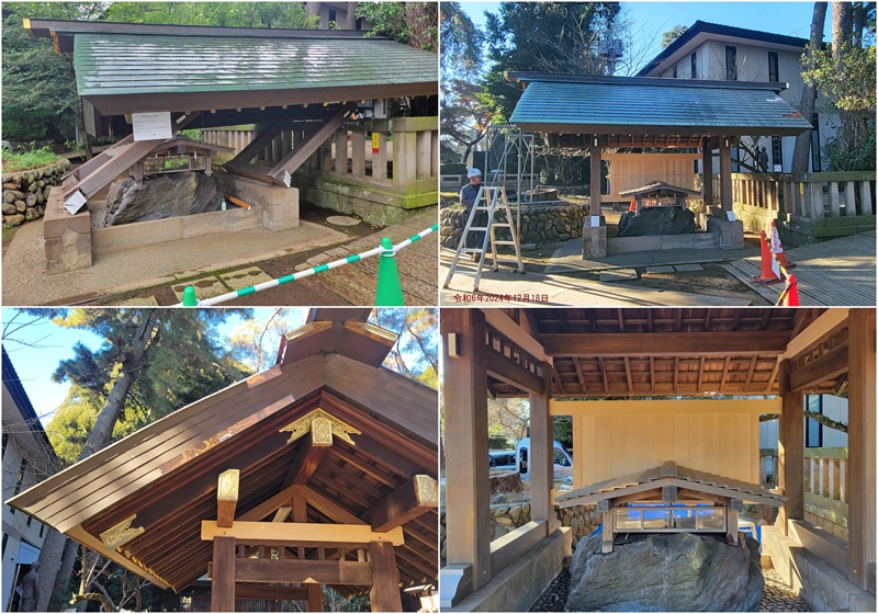 ・埼玉県さいたま市大宮区 ・令和6年2024年8月~1月撮影 ・参道手水舎修復工事 ・竜巻倒木被害 ・部材交換、各部補強
