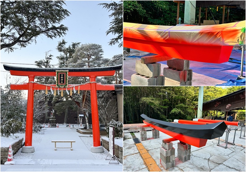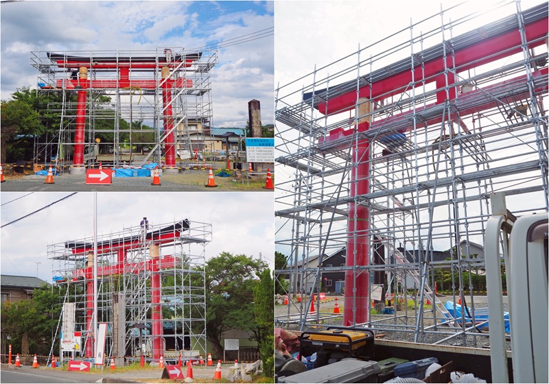・岩手県紫波郡紫波町 ・令和7年2025年8月6日笠木島木建方工事撮影 ・社頭鳥居再建工事 ・河川工事 境内移転事業 ・社頭の再整備