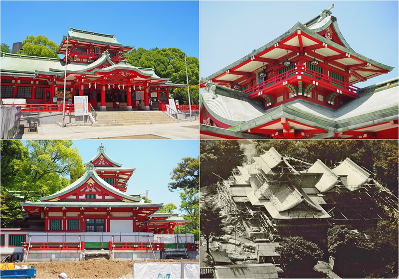 ・東京都江東区 ・令和6年2024年6月5日撮影 ・社殿新築工事昭和31年1956年竣工 ・戦災復興 ・築後約68年経過の現状確認 ・復興工事時写真と併記