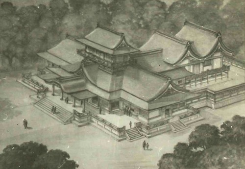 ・東京都江東区 ・昭和29年1954年撮影 ・戦災復興工事 ・社殿新築工事計画 ・昭和31年竣工 ・古い計画パースの発見