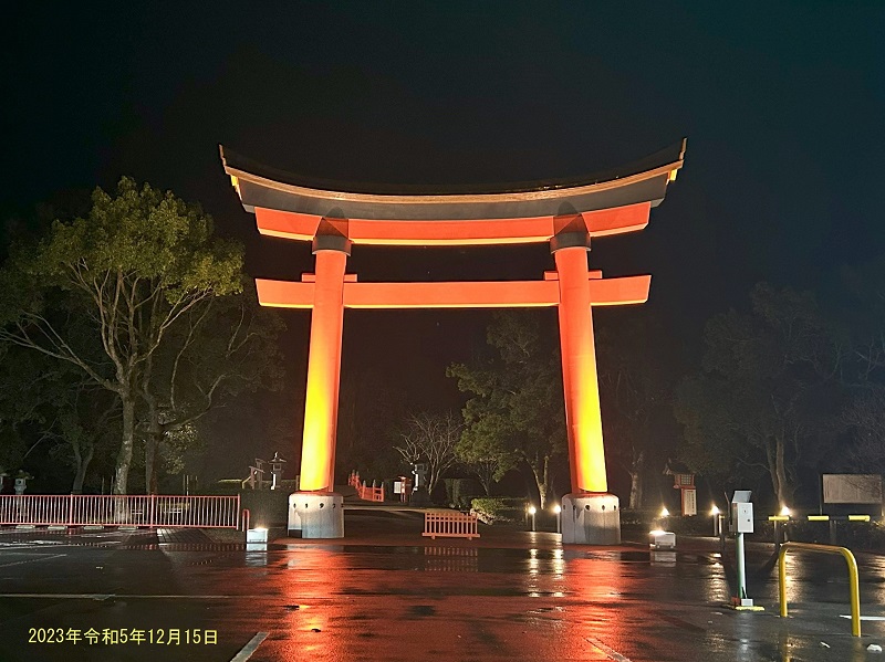 ・大分県宇佐市南宇佐 ・令和5年2023年12月15日撮影 ・社頭鳥居新築工事 ・竣工ライトUP写真